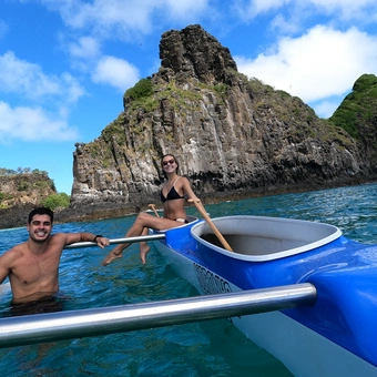 É normal que os participantes tragam seus smartphones para realizar registros fotográficos, mas lembrem-se que há riscos de serem molhados ou num descuido maior, caírem da canoa e se perderem no mar.